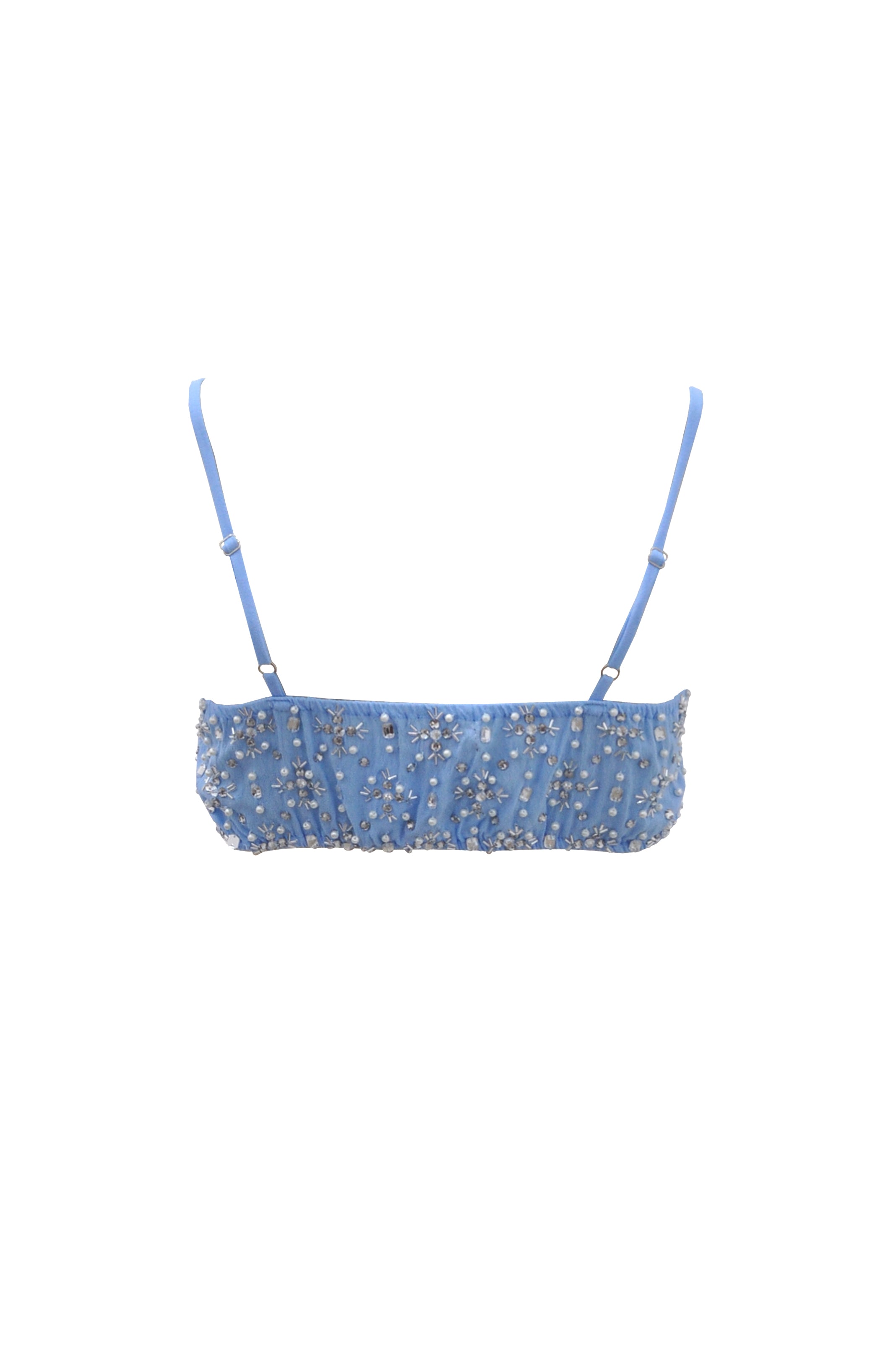 A simple, strappy crop top offering comfortable support and dazzling sparkle.